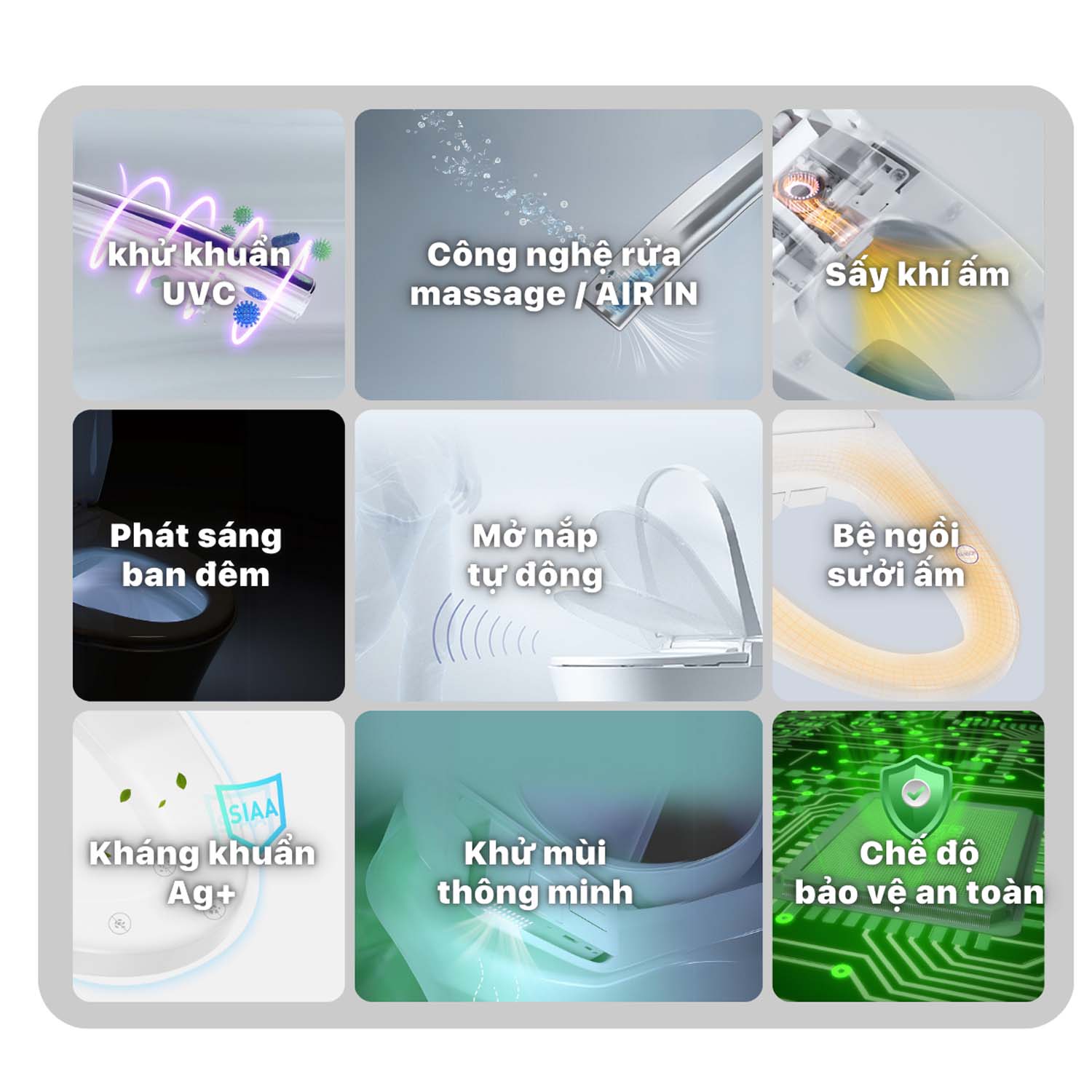 - Tích hợp hai vòi rửa: Hỗ trợ rửa sau (đại tiện) và rửa trước (tiểu tiện nữ) bằng nước ấm, mang lại cảm giác sạch sẽ và thoải mái.