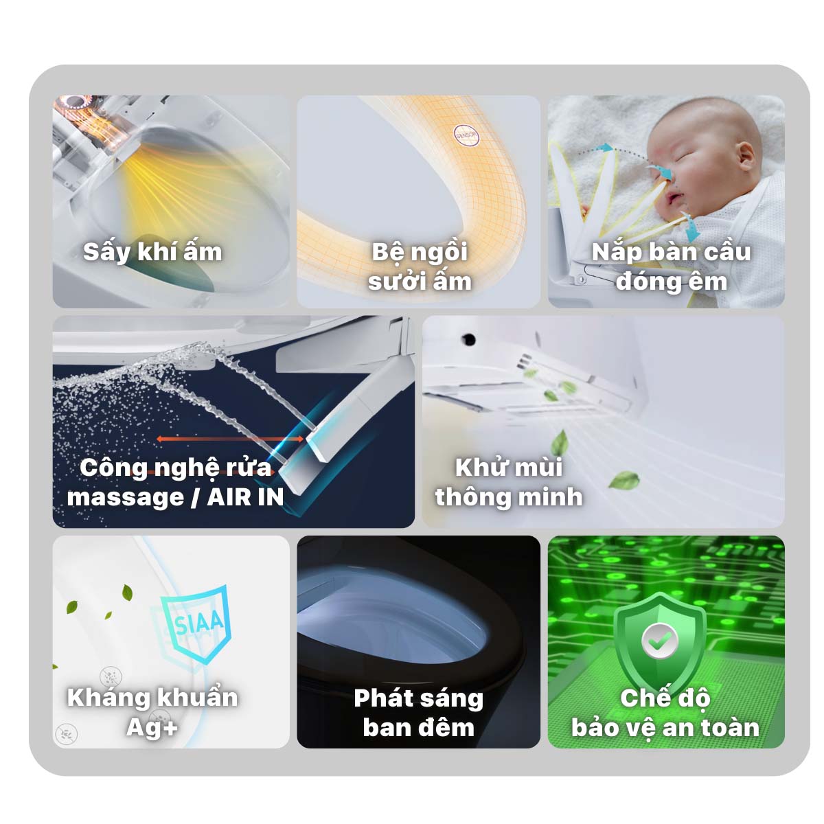 - Làm ấm nắp ngồi: Giữ nhiệt độ nắp phù hợp, mang lại sự thoải mái khi sử dụng.