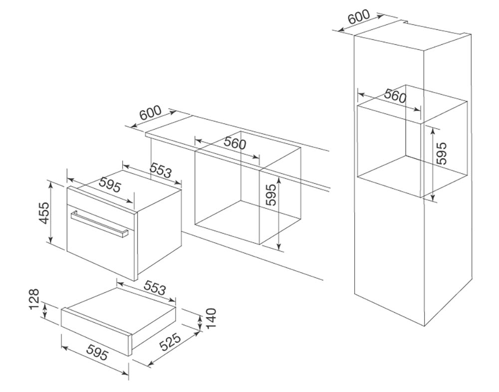 - Kích thước: W595 x D570 x H455mm