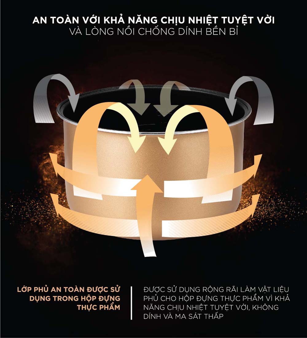 - Lòng nồi chống dính cao cấp: Lòng nồi được phủ lớp chống dính cao cấp, giúp cơm không bám dính và dễ dàng chất lượng, đồng thời đảm bảo việc nấu cơm diễn ra mượt mà và hiệu quả.