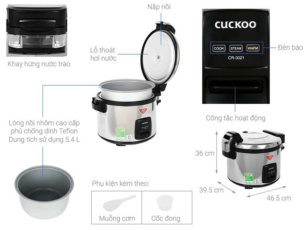 Thông số kỹ thuật Nồi cơm điện cơ CUCKOO CR-3521R 6.3L công nghiệp