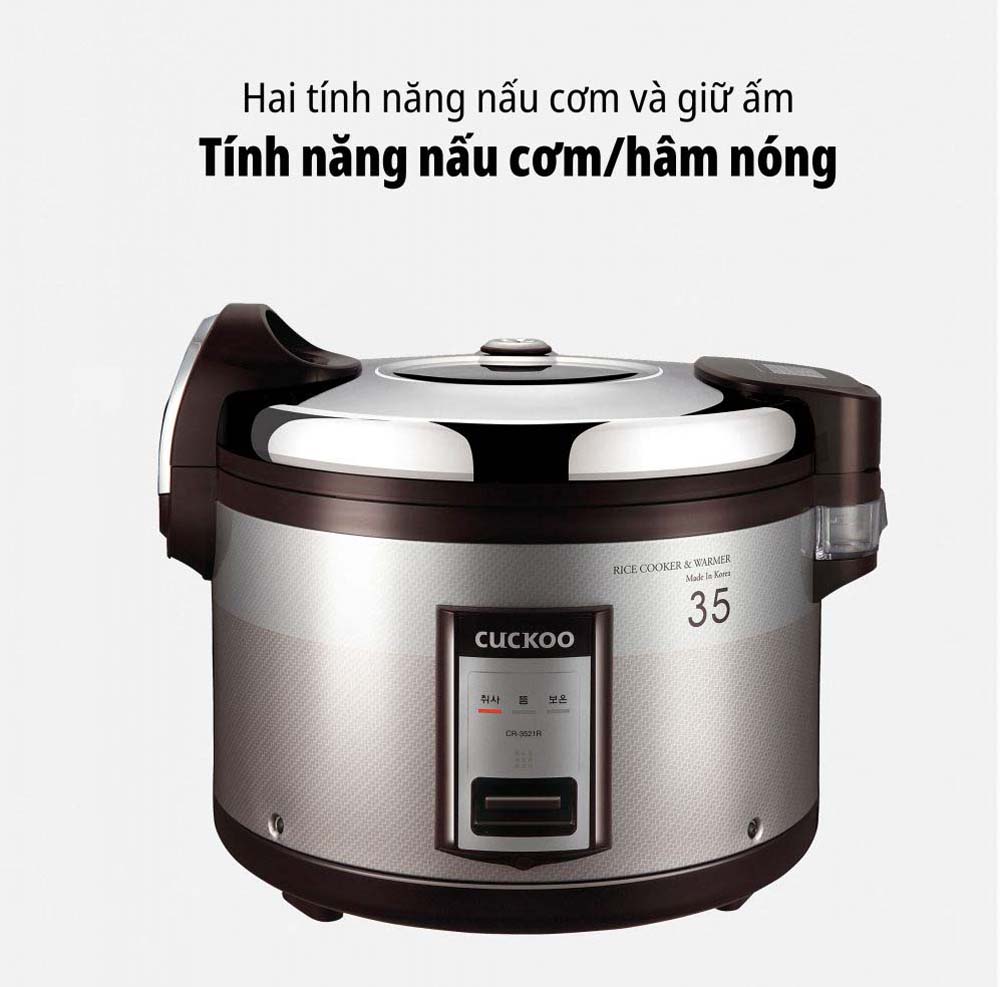 - Nồi cơm điện CUCKOO CR-3521R 6.3L công nghiệp đặc trưng bởi những tính năng độc đáo và hiệu quả, giúp việc nấu cơm trở nên thuận tiện và đáp ứng nhu cầu lớn của các doanh nghiệp trong lĩnh vực như nhà hàng, khách sạn, quán ăn, văn phòng, và trường học.