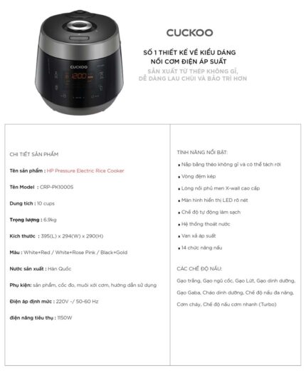 “Nồi cơm điện tử CUCKOO CRP-CHSS1009FN DBVNCV 1.8L áp suất cao tần” đã được thêm vào giỏ hàng. Xem giỏ hàng