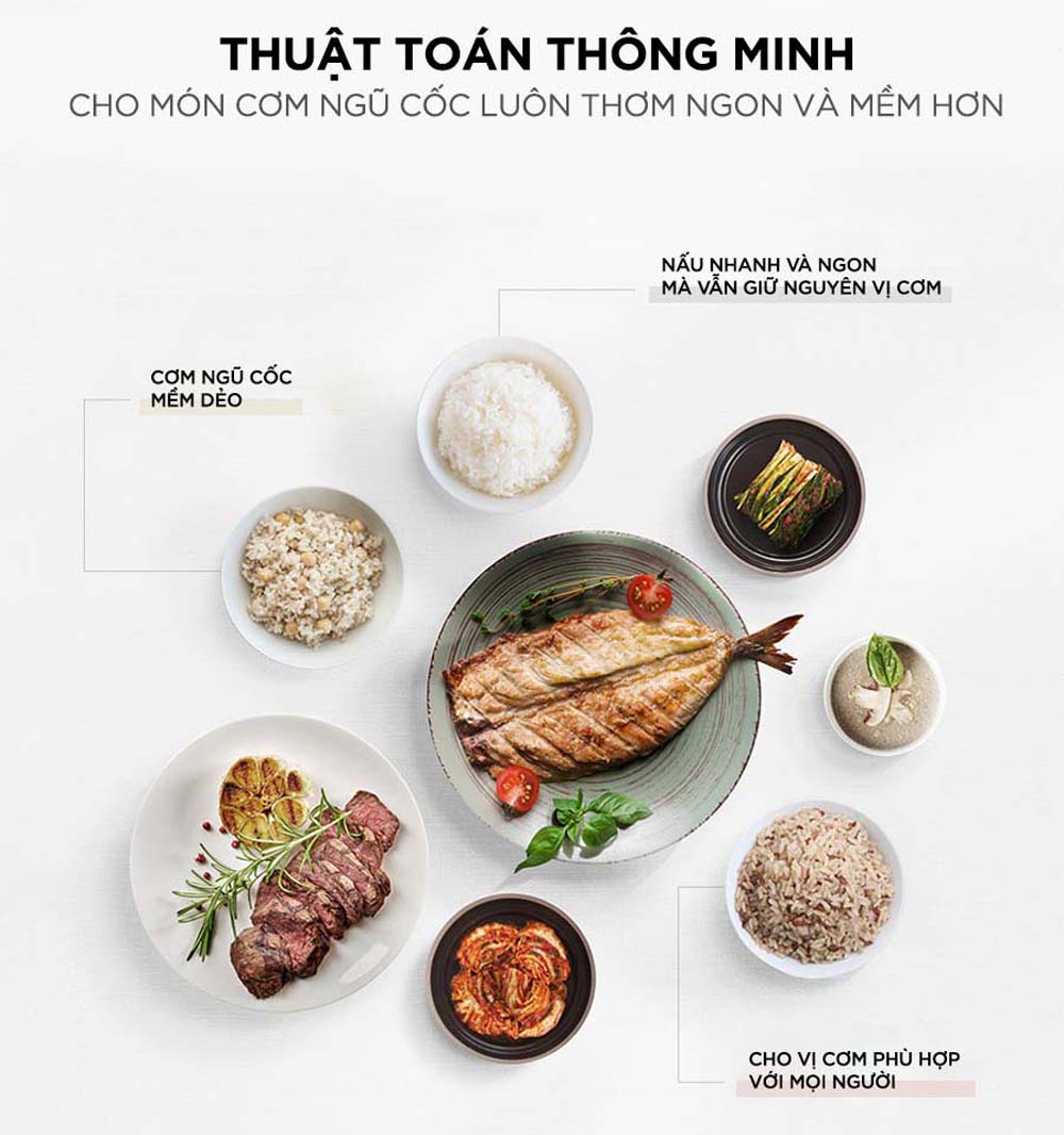 - Tích hợp nhiều chức năng nấu: Bao gồm nấu cơm, hầm, nấu ngũ cốc, và nấu đa năng, tạo sự linh hoạt trong việc nấu ăn.