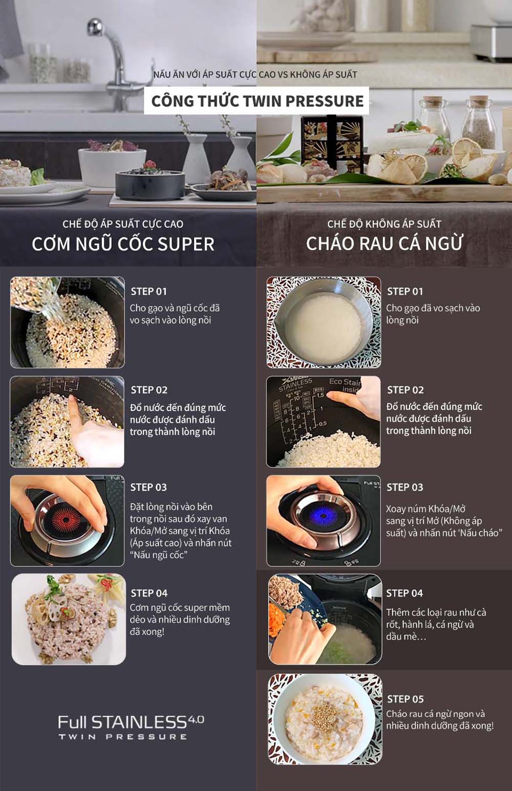 - Công nghệ kiểm soát nhiệt cao tần và áp suất cao: Đến 2.0 atm giúp thức ăn chín nhanh mà vẫn giữ trọn dinh dưỡng.