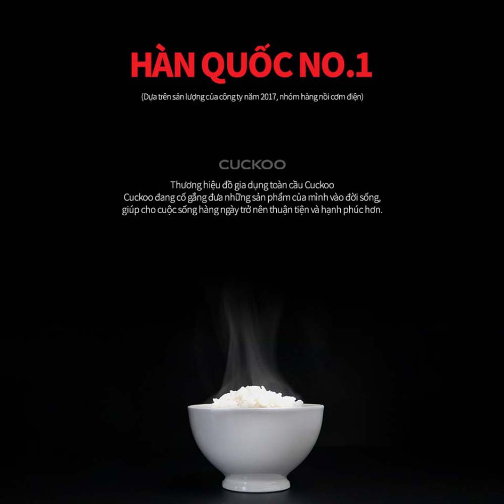 - Nồi cơm điện tử CUCKOO CRP-JHT1009F BRBKVN được sản xuất tại Hàn Quốc, dung tích 1.8L: Phù hợp cho gia đình 4-6 người.