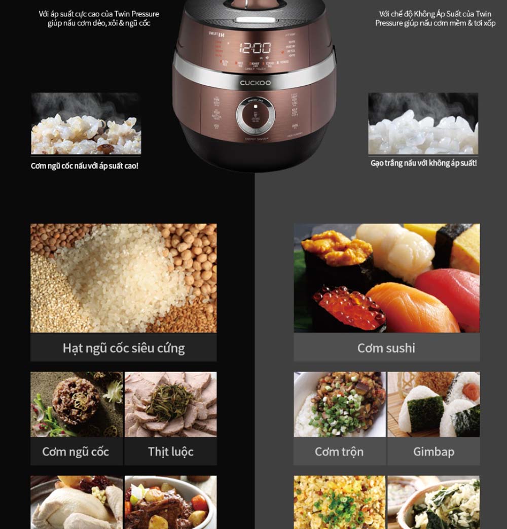 Tính năng Nồi cơm điện tử CUCKOO CRP-JHT1009F BRBKVN 1.8L áp suất kép cao tần