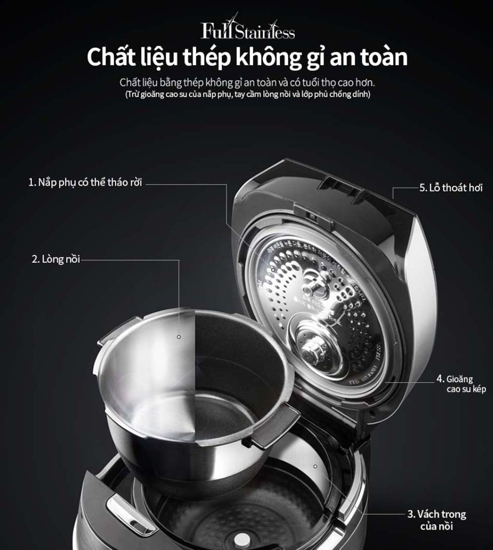 - 22 chức năng an toàn thông minh: Bảo vệ an toàn tuyệt đối trong quá trình sử dụng nồi cơm, giảm nguy cơ sự cố và đảm bảo trải nghiệm sử dụng an toàn.