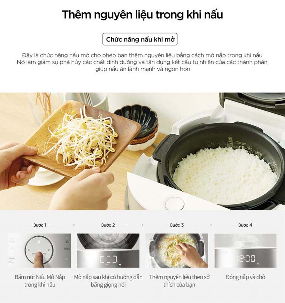 - Chế độ nấu ăn mở nắp tiện lợi: Linh hoạt trong quá trình nấu ăn.