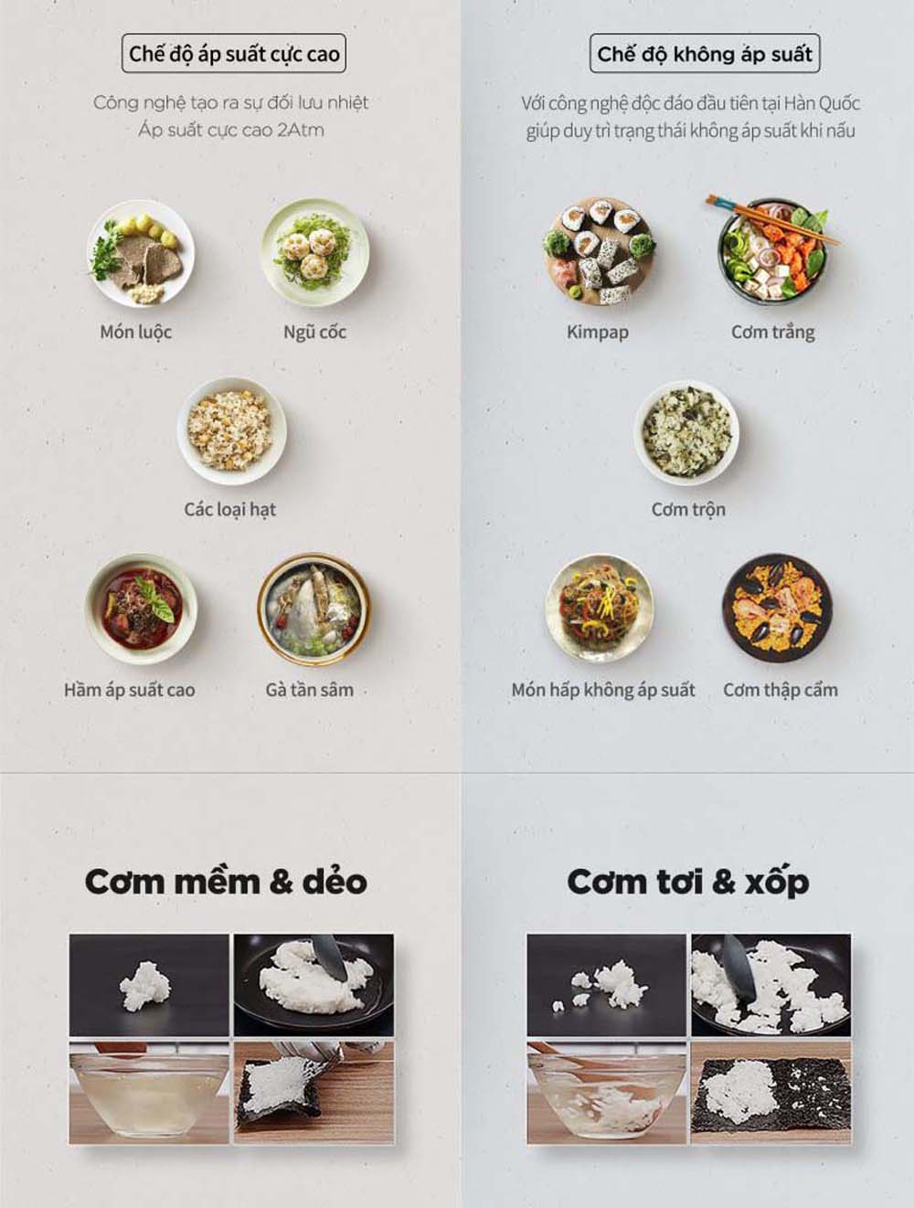 - Chức năng nấu áp suất kép: Áp suất cao và không áp suất.