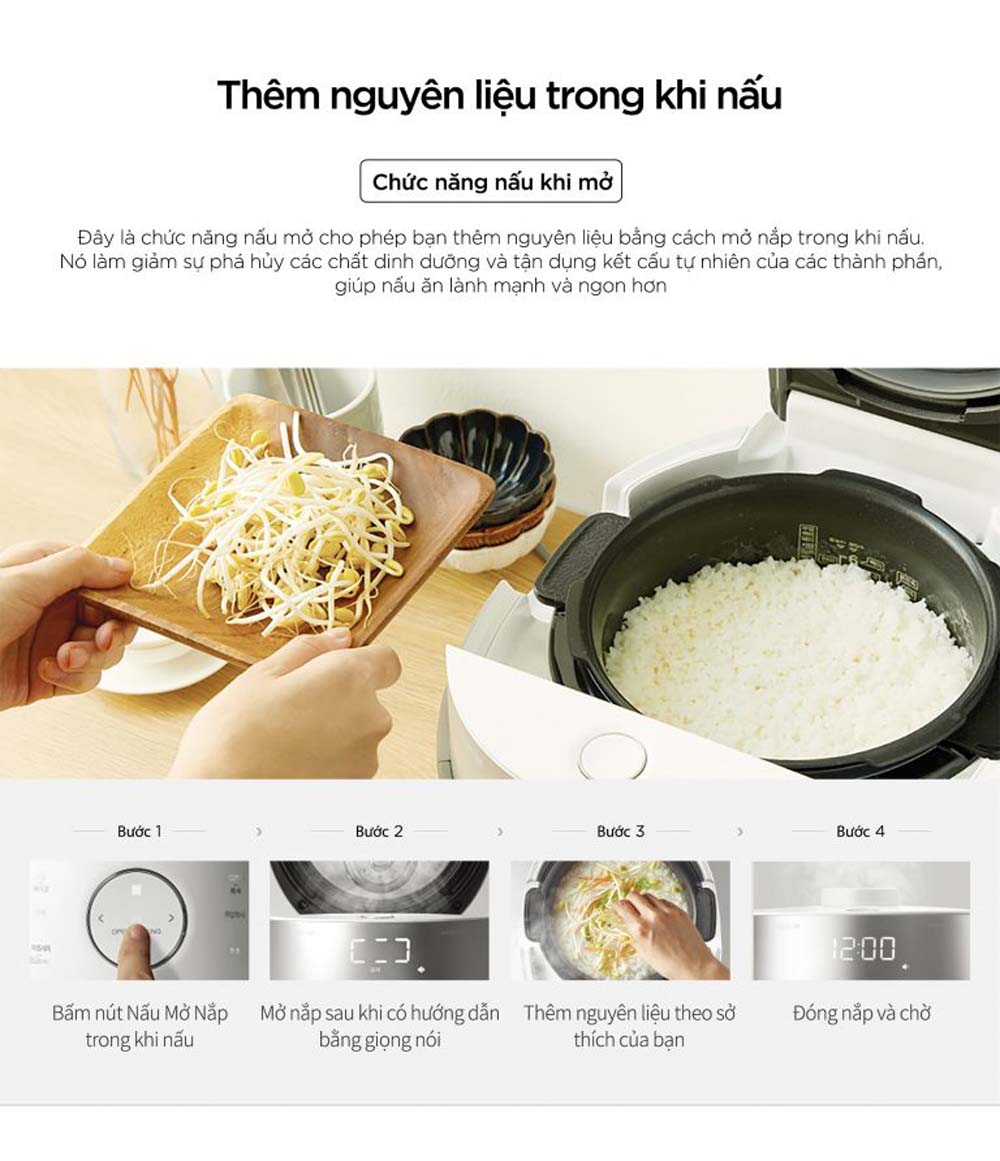 - Chế độ nấu ăn mở nắp tiện lợi: Linh hoạt trong quá trình nấu ăn.