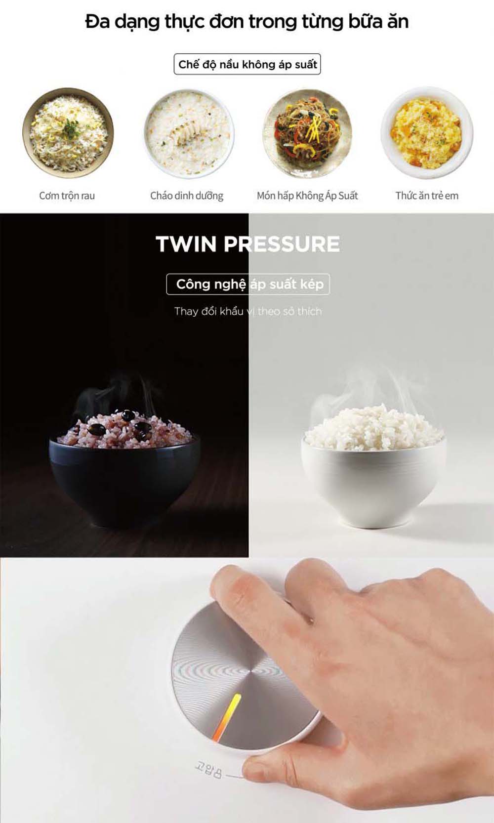 - Chức năng nấu áp suất kép: Áp suất cao và không áp suất.