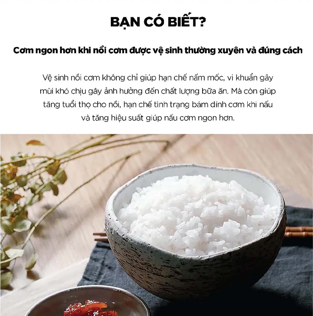 - Phụ kiện đi kèm: cốc đong gạo, muôi xới cơm, hướng dẫn sử dụng