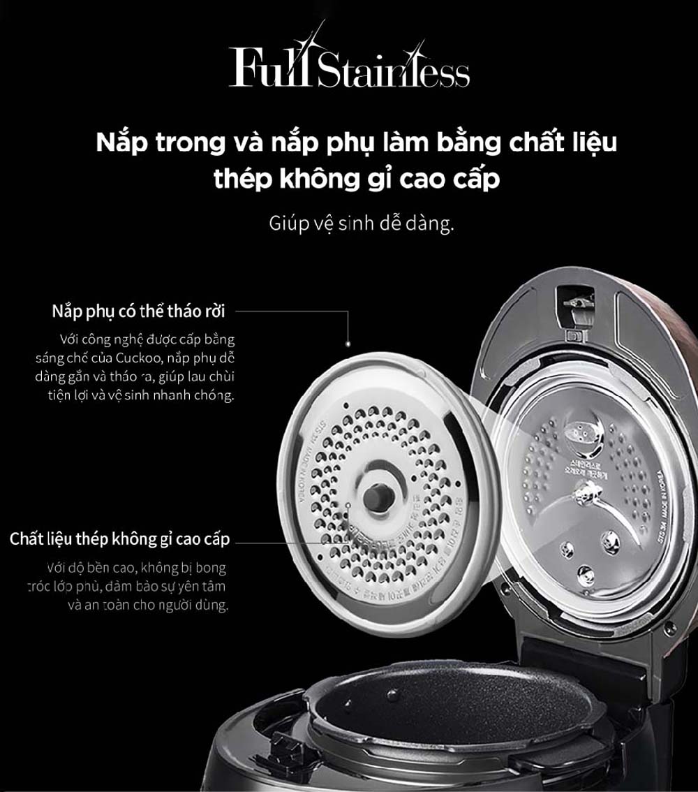 Tính năng Nồi cơm điện tử CUCKOO CRP-RT1008F WHPGVN 1.8L áp suất kép