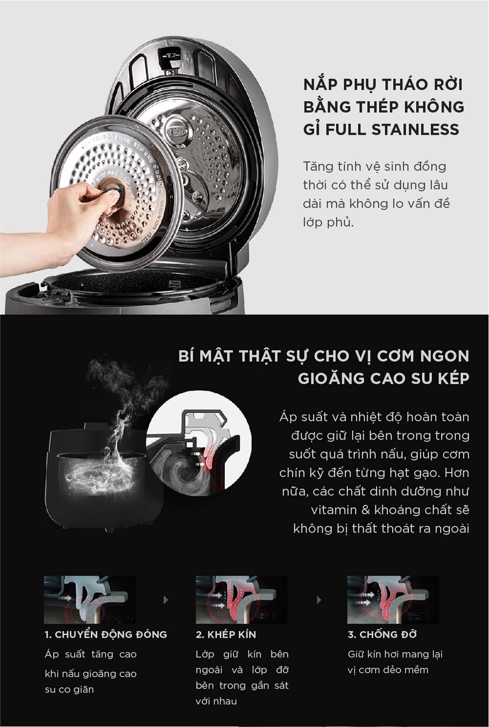 Tính năng Nồi cơm điện tử CUCKOO CRP-ST0610FG 1.08L áp suất kép