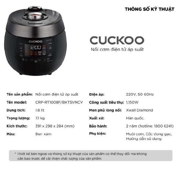 Nồi cơm điện tử CUCKOO CRP-JHT1009F BRBKVN 1.8L áp suất kép cao tần
