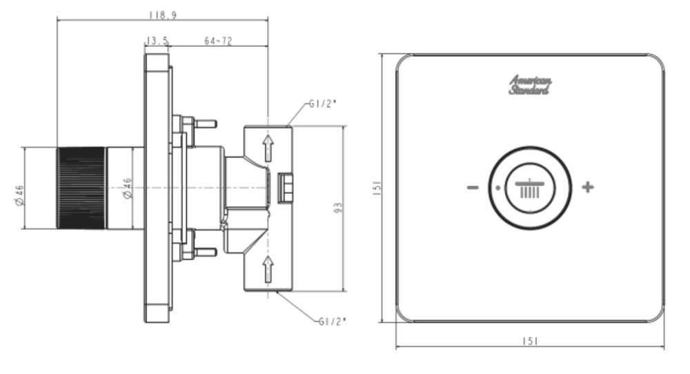 Bản vẽ kỹ thuật Nút điều chỉnh sen âm tường American Standard FFAS0926CS EasySET