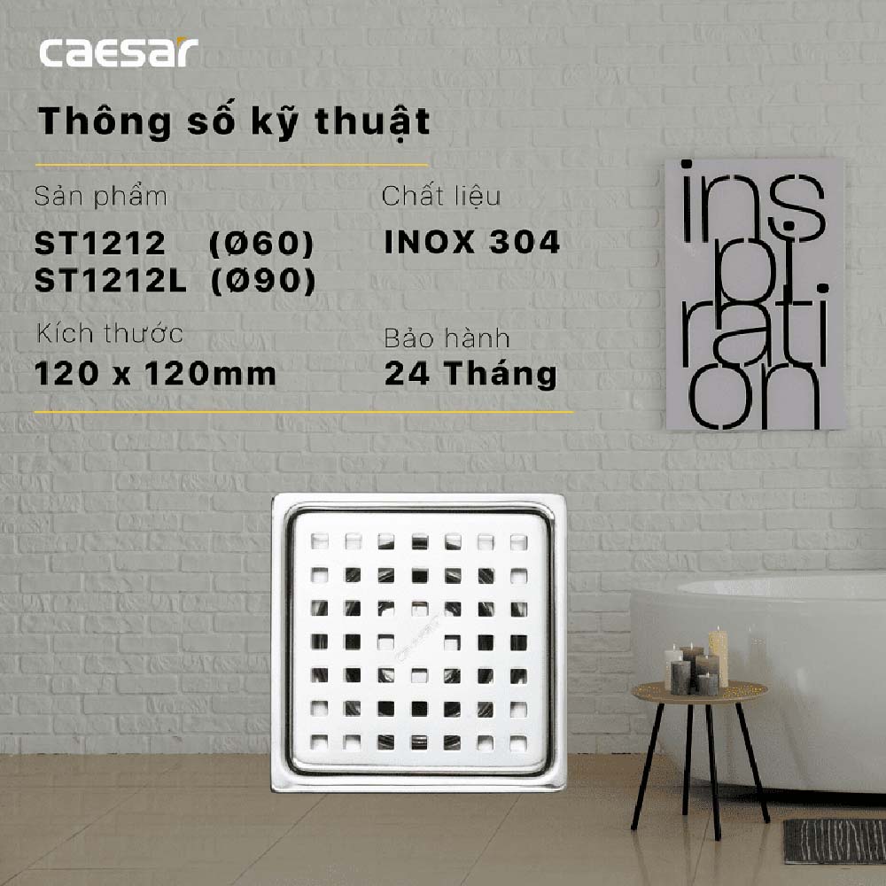 Thông số kĩ thuật Phễu thoát sàn CAESAR ST1212 120x120mm phi 60