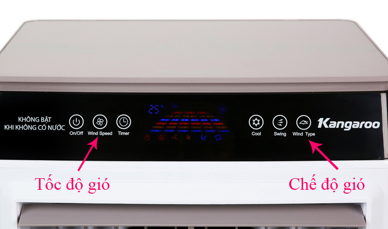 - Máy có màn hình hiển thị thông số như tốc độ gió, cài đặt hẹn giờ, chế độ quay và chức năng làm mát bằng hơi nước, giúp người dùng dễ dàng quan sát và điều chỉnh các chế độ hoạt động.