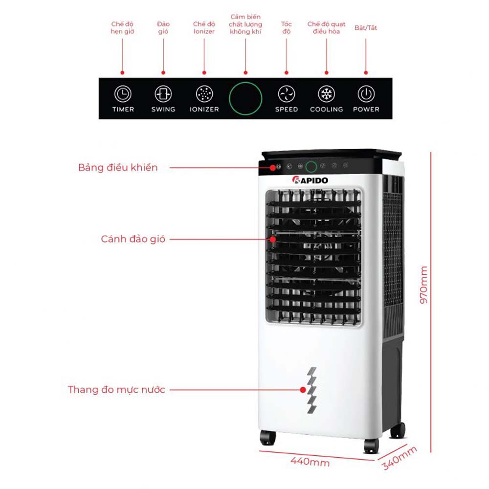 - Kích thước : 440 x 340 x 970 (DxRxC)
