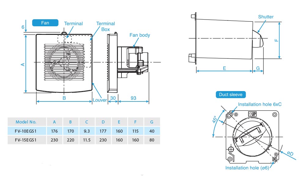 Thông số kỹ thuật Quạt hút PANASONIC FV-10EGS1 nhà tắm