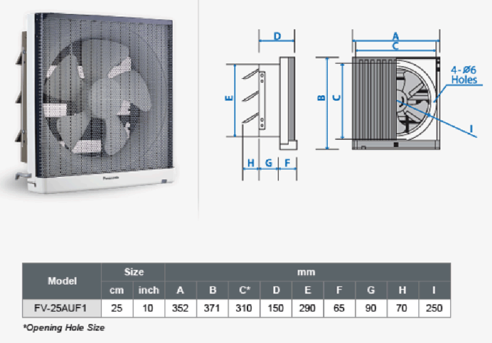 Thông số kỹ thuật Quạt hút PANASONIC FV-25AUF1 nhà bếp