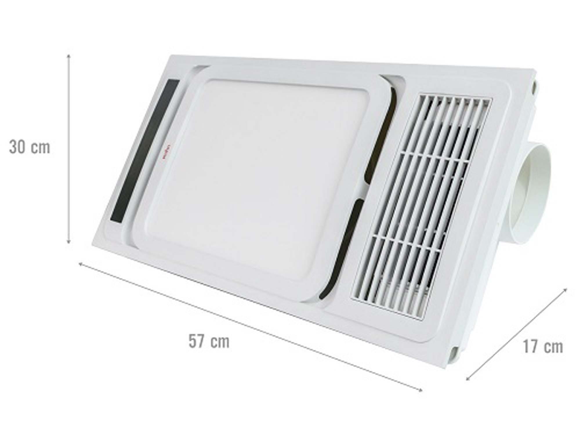 - Điều khiển từ xa (Remote) thông minh: Sản phẩm đi kèm bảng điều khiển không dây chống nước. Bạn có thể dễ dàng chuyển đổi các chế độ sưởi, hút mùi hay chiếu sáng chỉ với một nút bấm mà không cần đi dây điện dưới tường.