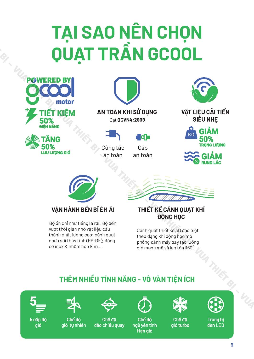 Tính năng Quạt trần GCOOL INFINITY 02 R 2 cánh