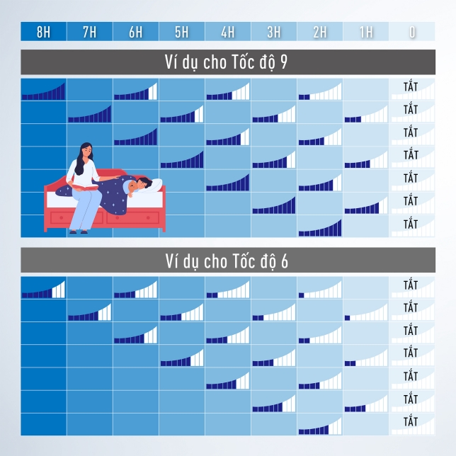- Sleep mode: Chế độ gió theo nhịp sinh học lúc ngủ
