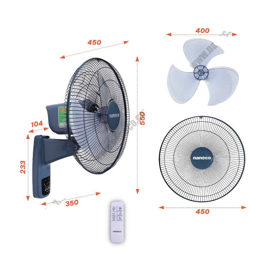 Thông số kỹ thuật Quạt treo tường NANOCO NWF1610RC-BL xanh