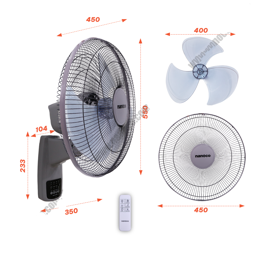 Thông số kỹ thuật Quạt treo tường NANOCO NWF1610RC-G xám