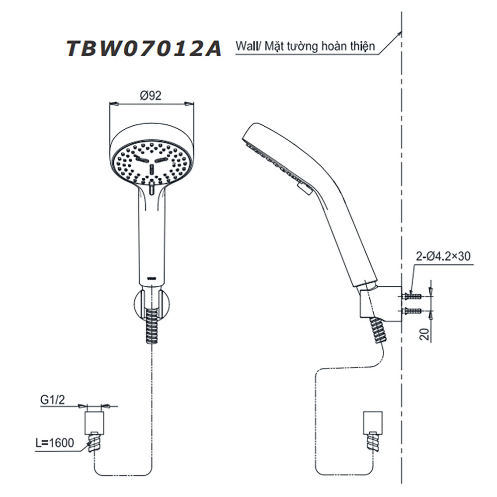 Bản vẽ kỹ thuật Tay sen tắm TOTO TBW07012A massage 2 chế độ