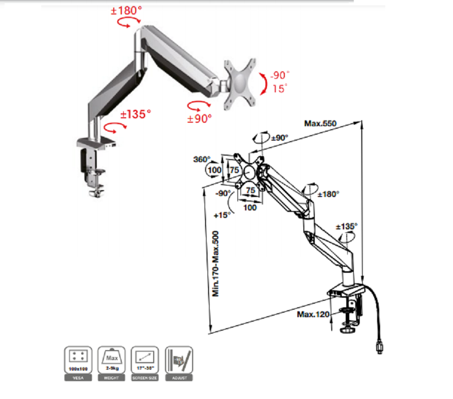 - Hỗ trợ màn hình 17 – 30 inch: Phù hợp với nhiều kích thước màn hình thông dụng hiện nay.