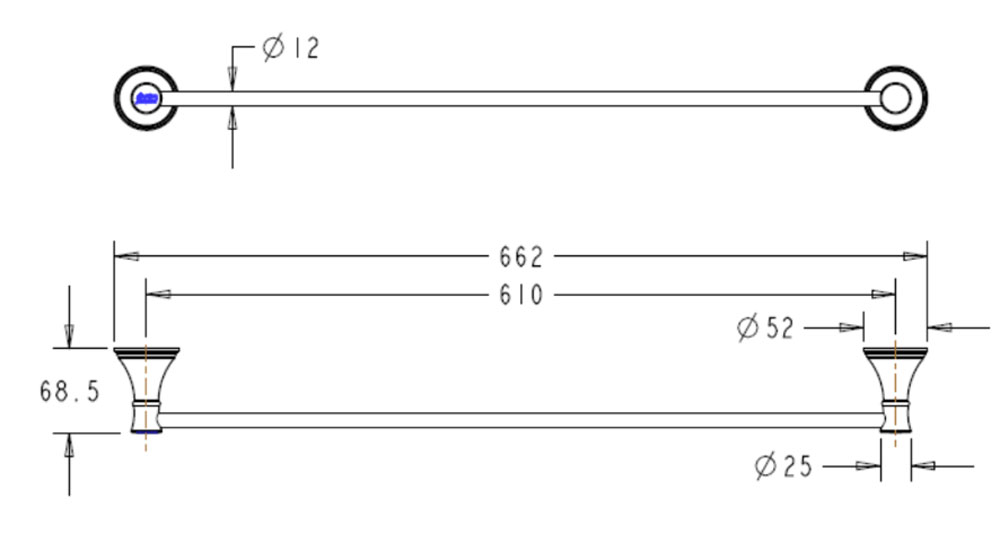 Bản vẽ kĩ thuật Thanh treo khăn American Standard WF 0293 Heritage