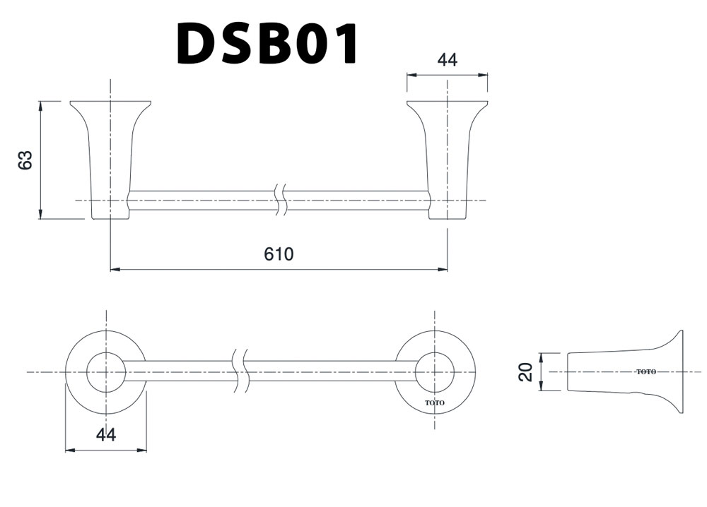 Bản vẽ kĩ thuật Thanh vắt khăn TOTO DSB-01