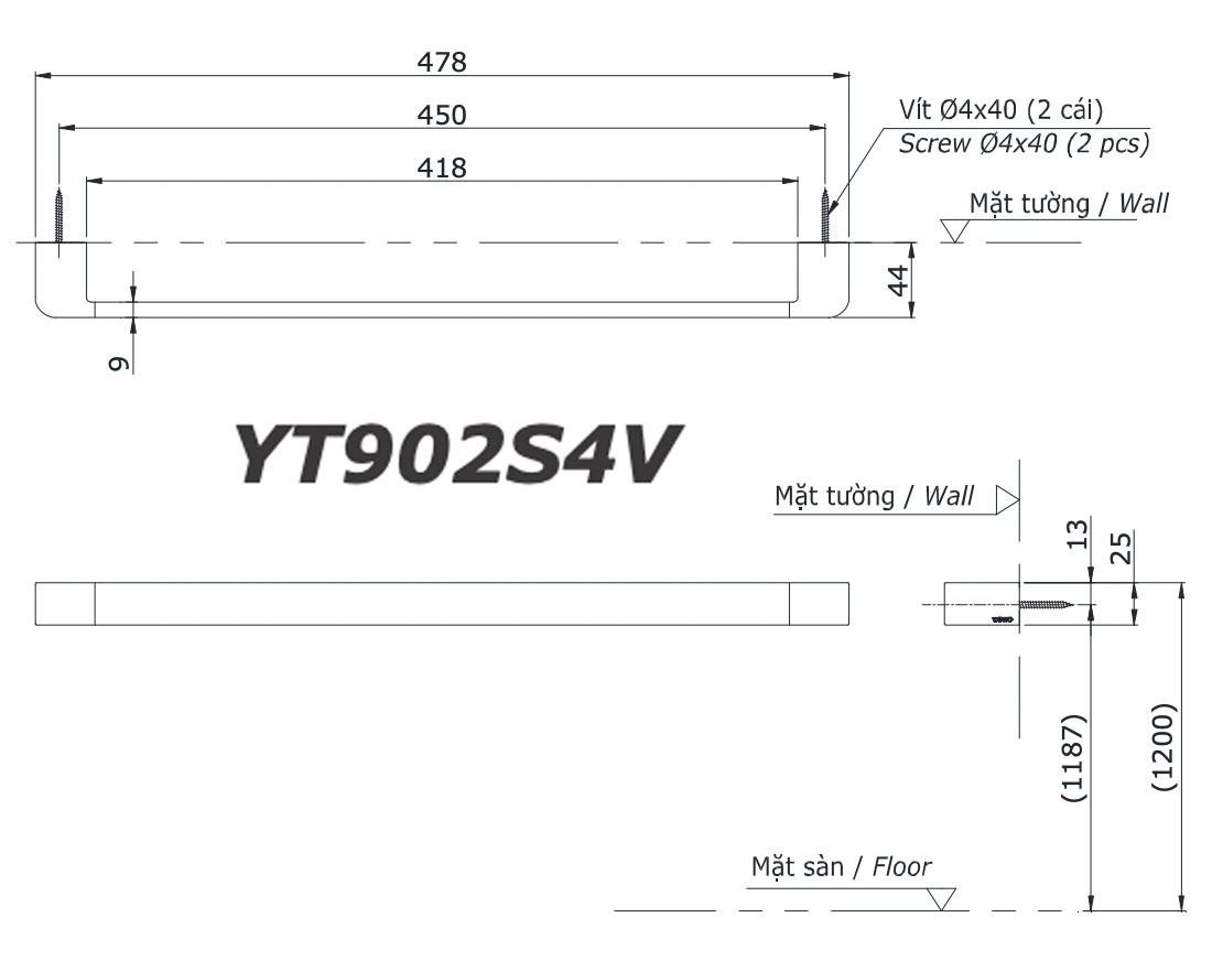 Bản vẽ kĩ thuật Thanh vắt khăn TOTO YT 902S4V