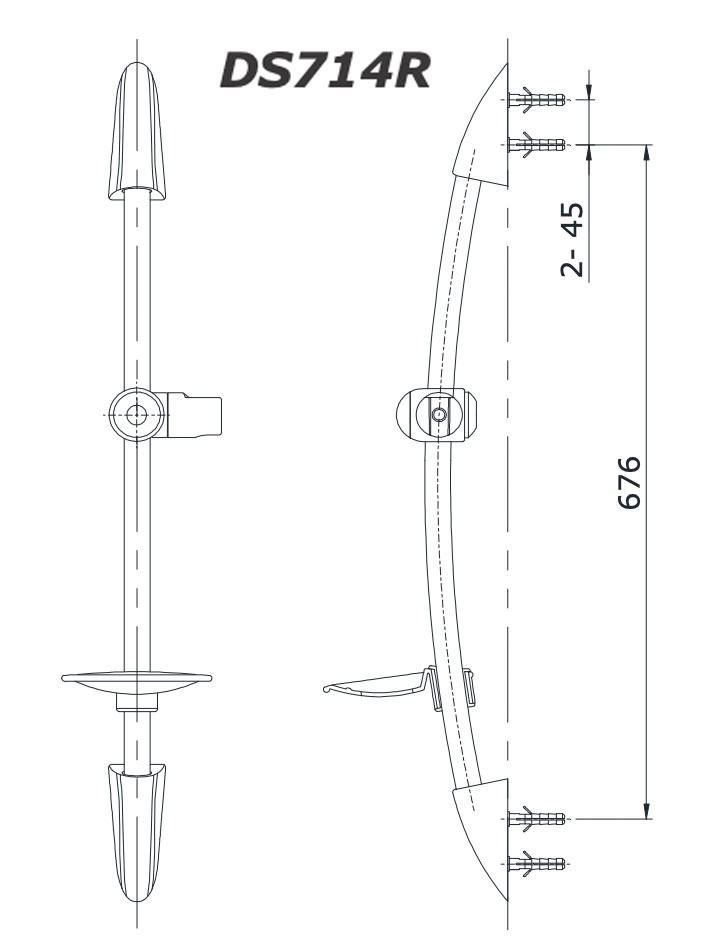 Bản vẽ kỹ thuật Thanh trượt sen tắm TOTO DS714 R