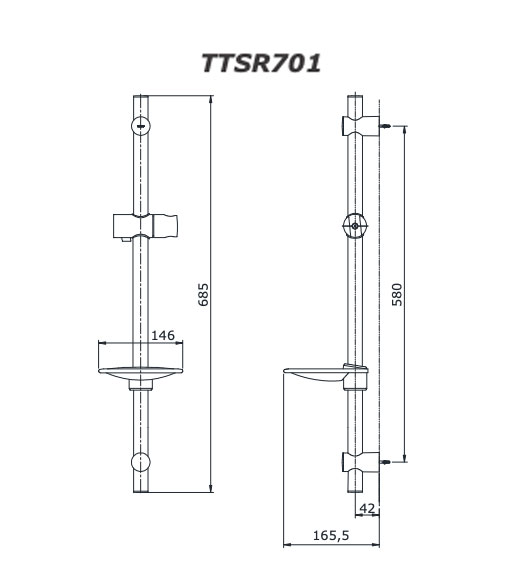 Bản vẽ kỹ thuật Thanh trượt sen tắm TOTO TTSR701
