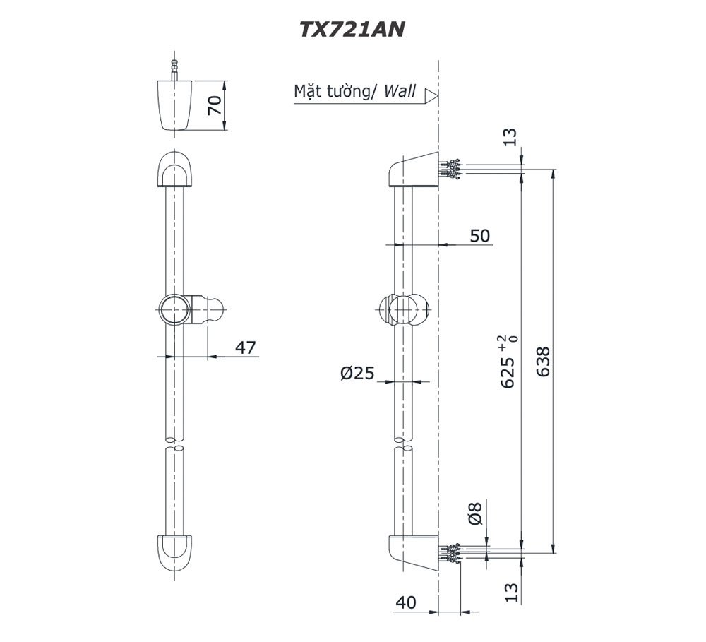 Bản vẽ kỹ thuật Thanh trượt sen tắm TOTO TX721AN
