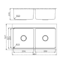 Chậu rửa bát inox KONOX UNICO 8250 dương bàn 2 hố
