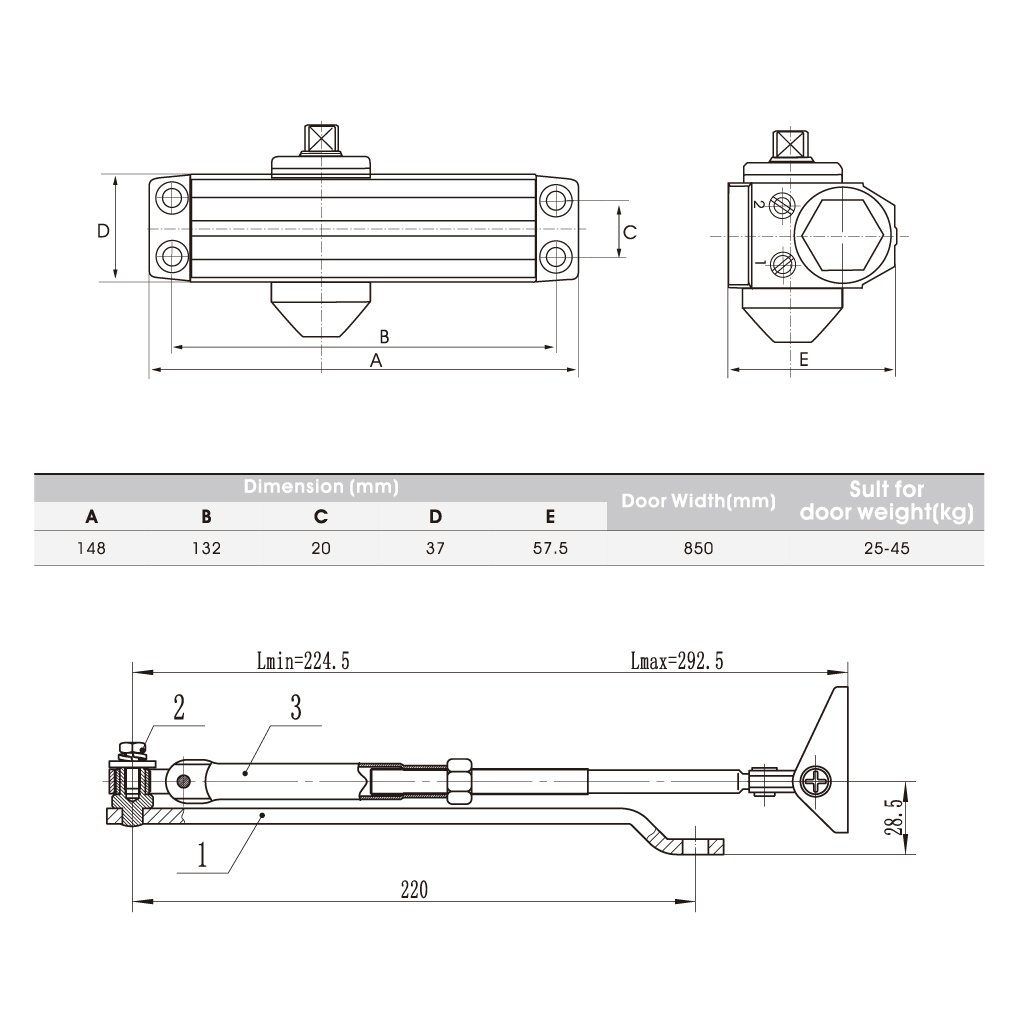 Bản vẽ kích thước Thiết bị đóng cửa tự động HAFELE EN2 489.30.012