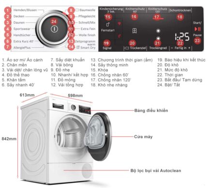 Máy sấy quần áo Bosch WTX87KH0BY 9Kg Serie 8