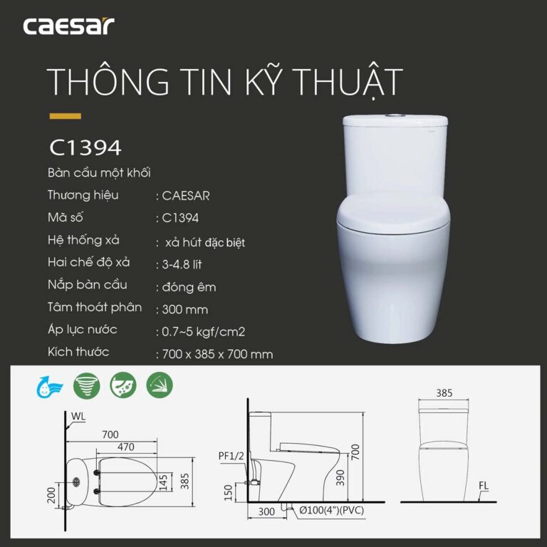 Bồn cầu 1 khối CAESAR C1394 (CD1394) nắp êm M233