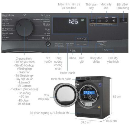 Máy sấy quần áo Electrolux EDS904H3WC 9Kg