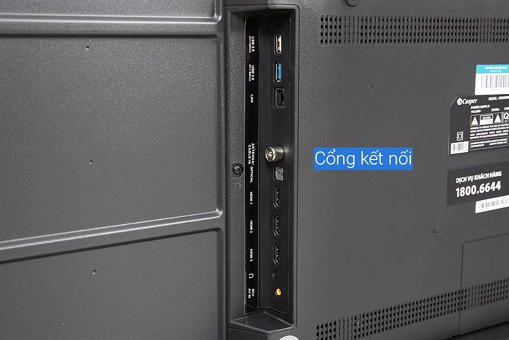 - Cổng kết nối: HDMI x3, USB x2, AV Composite x1, Optical, Jack 3.5mm, LAN (RJ45)