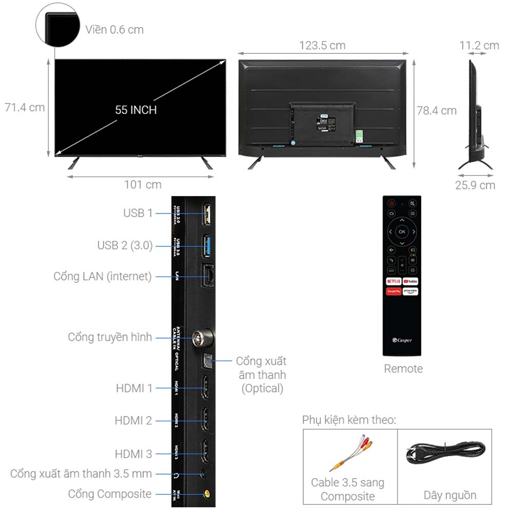 THÔNG SỐ KỸ THUẬT Tivi Casper 55QG8000 55 inch 4K QLED Android