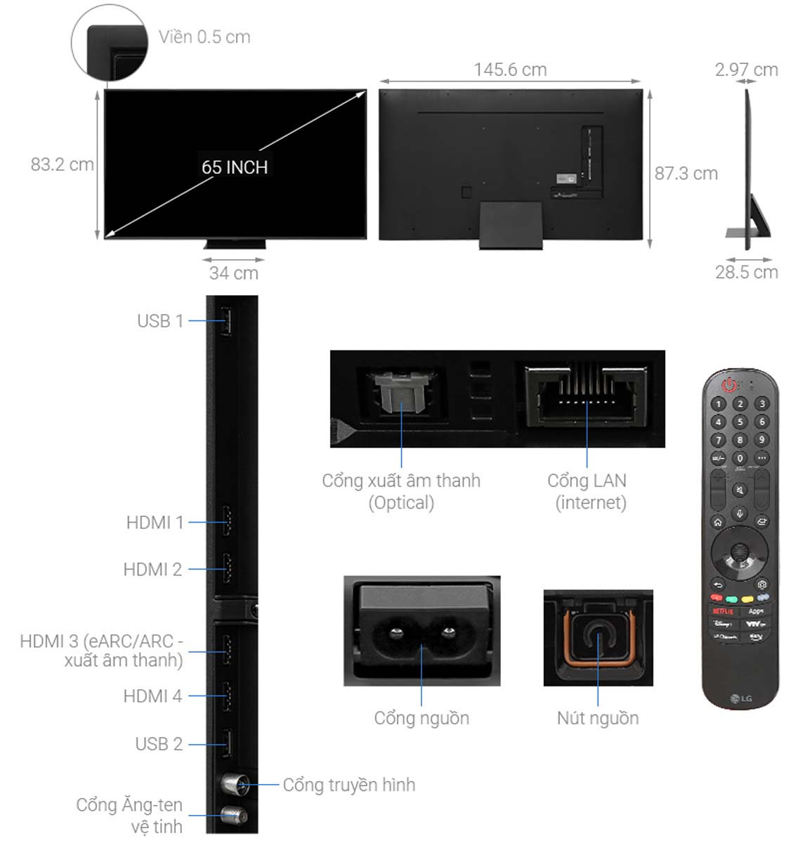 Thông số kĩ thuật Smart Tivi LG QNED 4K 65 Inch 65QNED86TSA