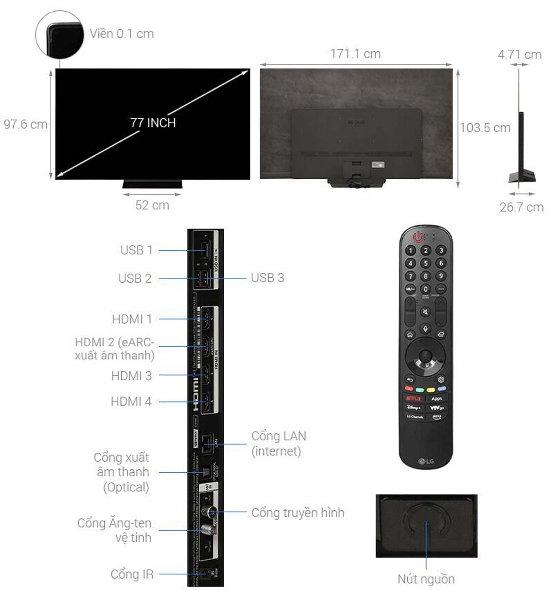 Thông số kĩ thuật Smart Tivi LG OLED 77 Inch 4K 77C4PSA