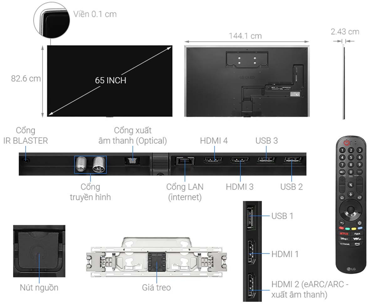 Thông số kĩ thuật Smart Tivi LG OLED 65 Inch 4K 65G4PSA