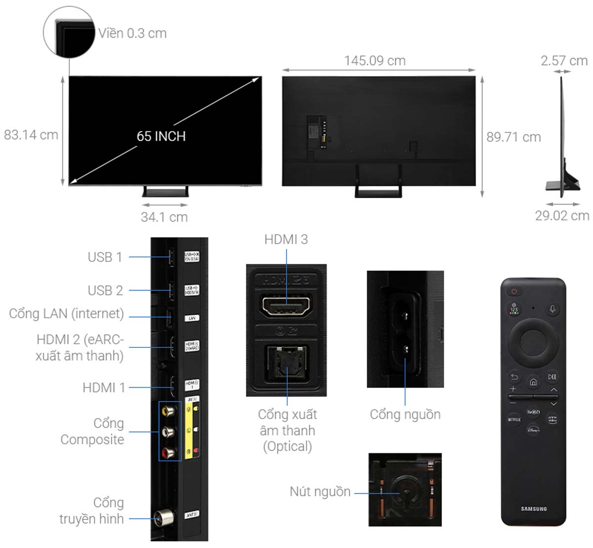 | Kích thước có chân đế | 1450.9 x 897.1 x 290.2 mm (WxHxD) |